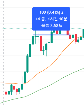 ![]() 위가 고려아연, 아래가 한화에어로스페이스 13:30에는 고려아연이 필터링 됐지만, 13:40에는 필터링 풀림. 분봉 기준 필터링으로 사료됨. 변동성 측면에서 보면 고려아연을 매매했어야 하지만, 매수/매도 타이밍으로 손익을 극대화 할 포인트가 있어 보인다. |