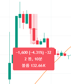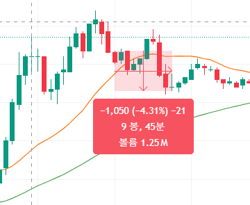 ![]() 손절 이후 지속 하락. 나이스 손절. -> 당일 고가 저항선을 뚫지 못하고, 떨어짐. -> 라인 매매 적용 시, 손실 최소화 가능해보임 |