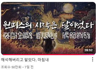 원래도 원피스를 좋아하는데, 점점 마지막이 다가올수록 심오해져서 분석 유튜브를 보는 재미에 빠졌다.