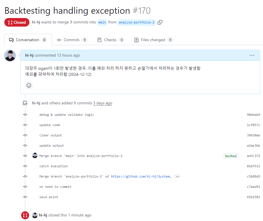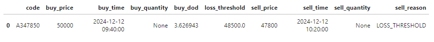 - 예외 처리를 하지 않아 손절가까지 처리하지 않은 내역을 업데이트하여, 24/12/12 매매 내역의 손실 비율을 줄였다.