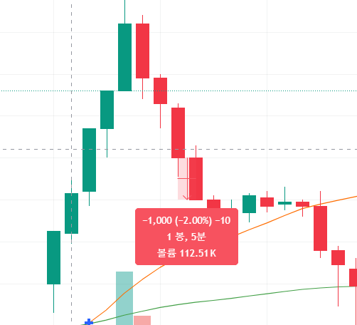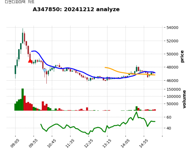 9:40에 signal이 발생하여 디앤디파마텍을 매수했고, 손절가까지 넘어가서 묵직하게 손실을 봤다.