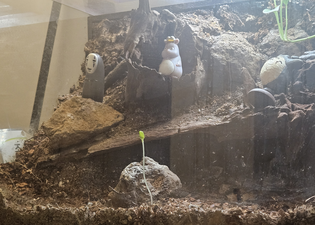 여행 갔다가 집으로 돌아오니 지금은 황량해진 테라리움에 새싹이 생겼다.