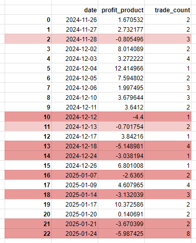 - 그런데, 24/12/12의 손실은 줄었지만 다른 일자에도 side-effect가 생겨버려서 전체 수익률과 승률이 감소했다.